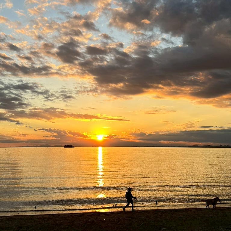 海辺に沈む⼣⽇が、オレンジ⾊に街を染める幻想的な時間