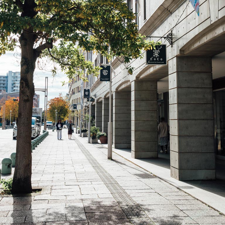 欧⾵のデザインが感じられる⽯畳の歩道や広場を毎⽇眺められます