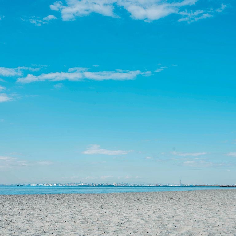 ⽩砂と⻘空のコントラストが美しい、南国リゾートのような景観